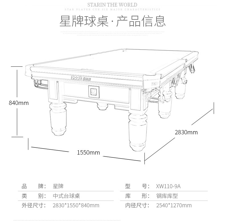 星牌 XW110-9A 美式臺球桌